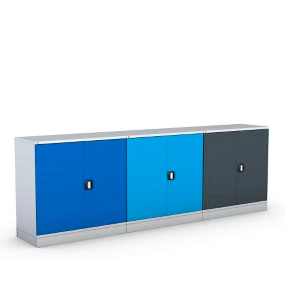 - Корпус с цоколем под погрузчик и декоративными накладками – 1 шт. Двери распашные. Трехточечный замок (2 ключа в комплекте).