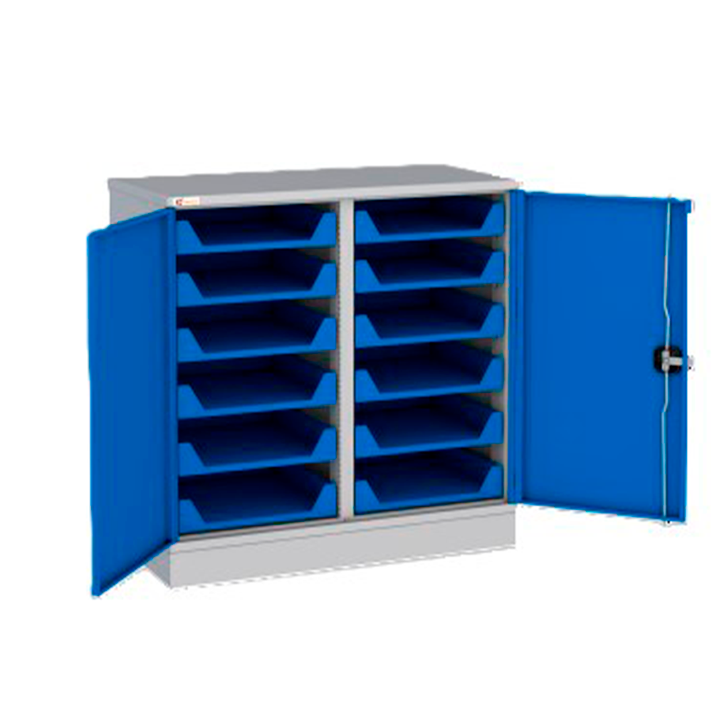 - Корпус с цоколем под погрузчик и декоративными накладками – 1 шт. Двери распашные. Трехточечный замок (2 ключа в комплекте).