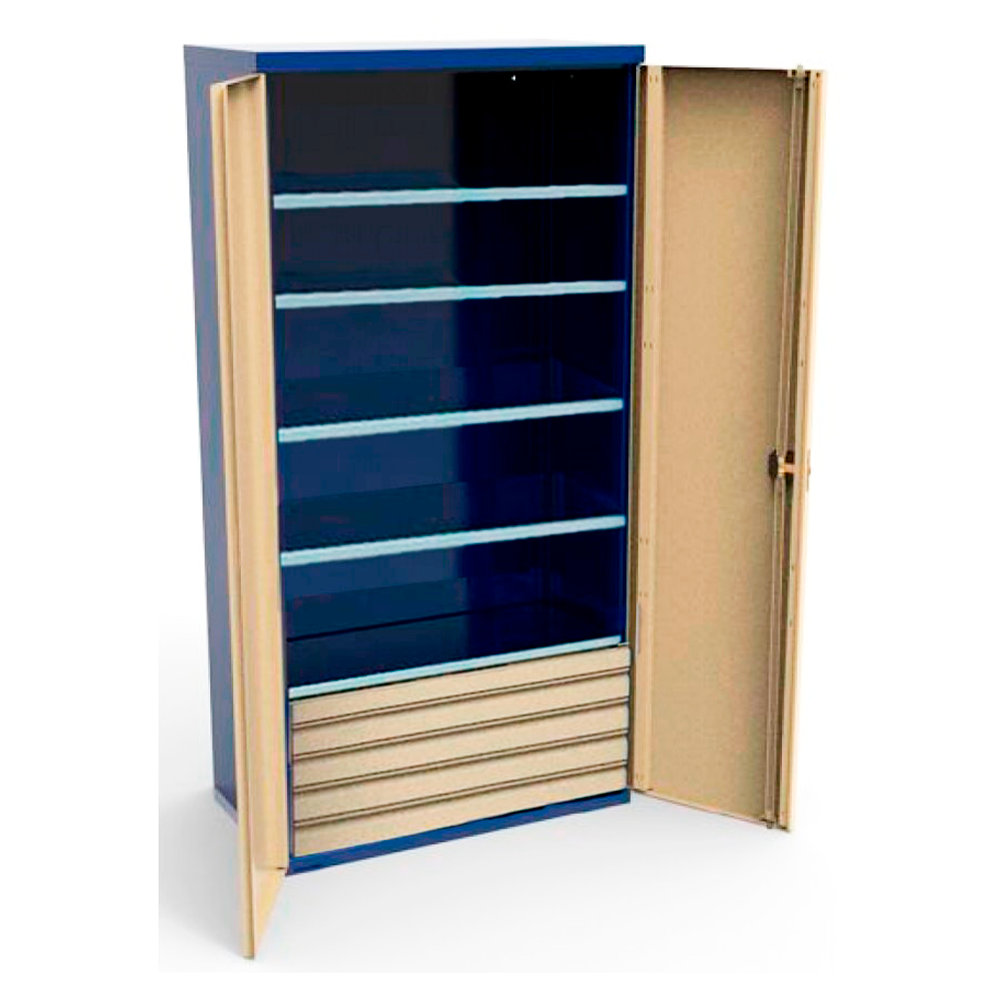 Металлические шкафы серии Святогор имеют прочный металлический корпус, изготовлены из х/к стали толщиной 0,9 мм. Полки выполнены из оцинкованной стали 2 мм. Шаг установки полок 90 мм. Двери с ригельным замком (поворотная ручка, 2 ключа в комплекте). Петли скрытые, осевого типа. Опоры (ножки) шкафа М10 регулируемые по высоте. Конструкция дверей и задней стенки с возможностью установки перфорированных экранов. Максимально возможное количество комплектующих для шкафа серии СШИ-01: полки – 20 шт., ящики – 20 шт., для шкафа серии СШИ-02: полки – 40 шт., ящики – 40 шт. Корпус шкафа поставляется в собранном виде. Нагрузки: на ящик 30 кг, на полку 200 кг, на шкаф 2000 кг.