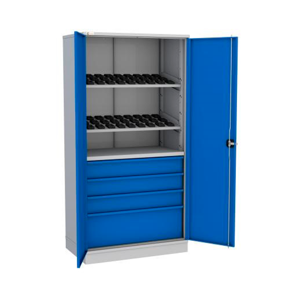 Шкаф инструментальный серии Flames. Шкаф инструментальный для хранения оснастки ВТ40 к станка с ЧПУ. Выполнен из стали толщиной 1,5 мм. Легко настраивается под разные задачи за счет модульной конструкции. Шкафы серии 1228 с габаритами ВхШхГ , мм 2000х1000х600. Нагрузка на корпус до 1500 кг. Допустимая нагрузка на полки до 200 кг . На ящики 100/200 кг.