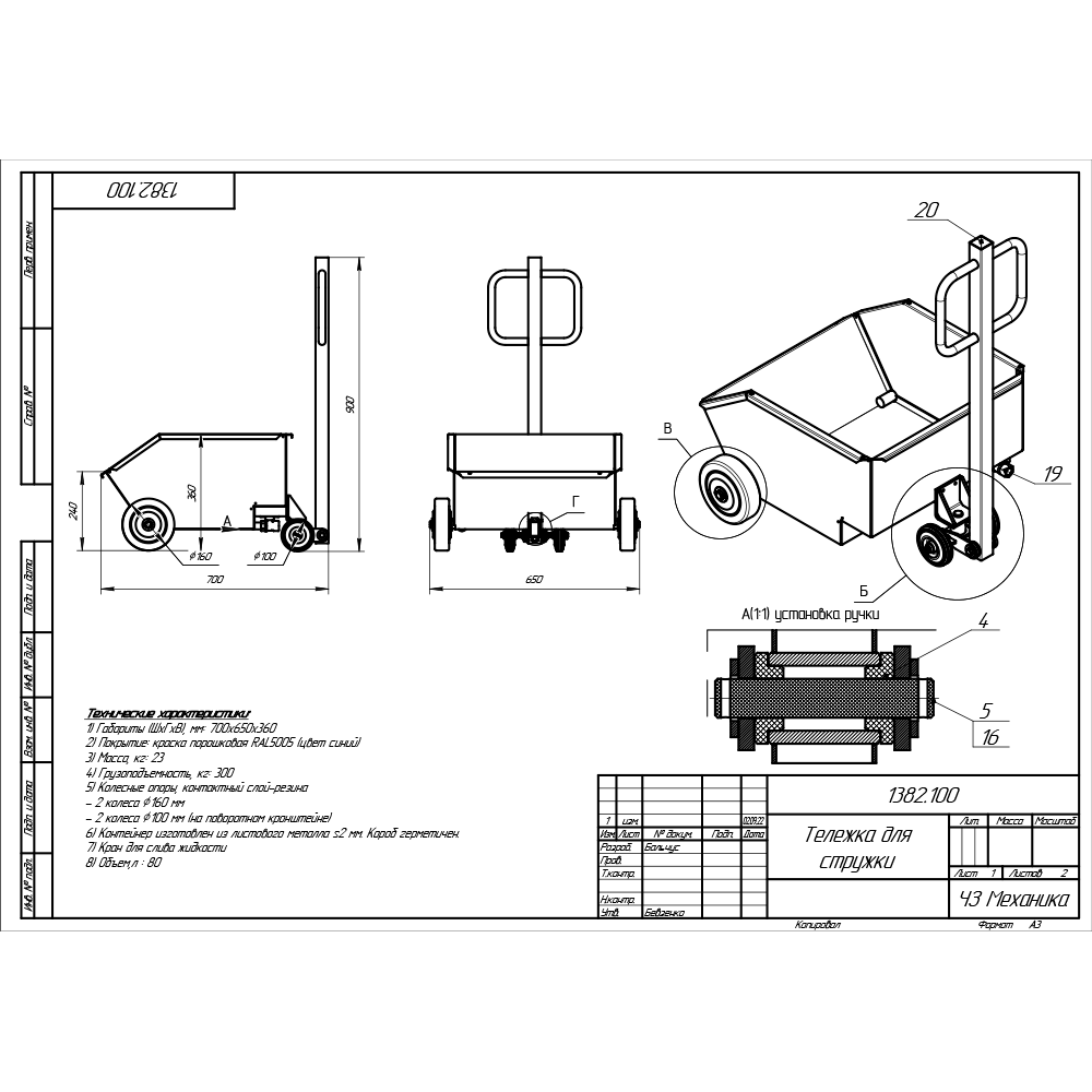 | Конструкция и вес | Сварная. Вес 23 кг. Грузоподъемность 300 кг |