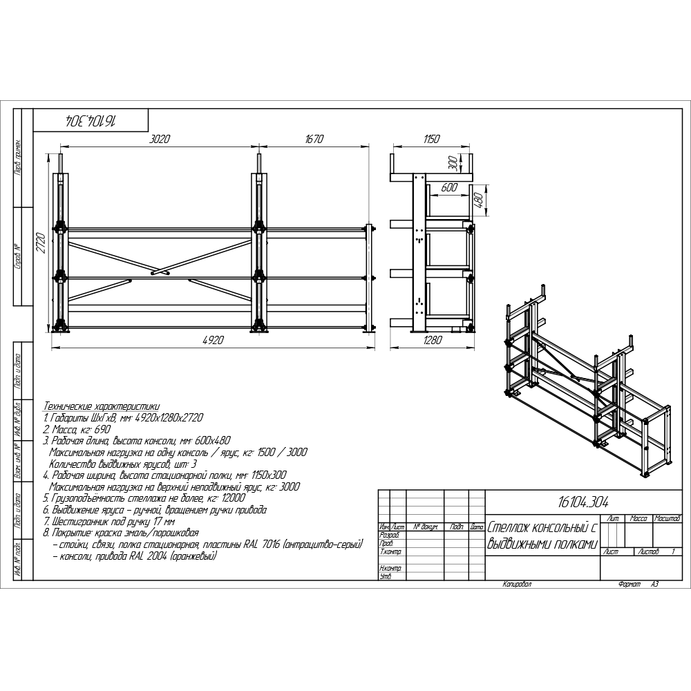 - Максимальная нагрузка на выдвижную полку (ярус) – 3 000 кг.