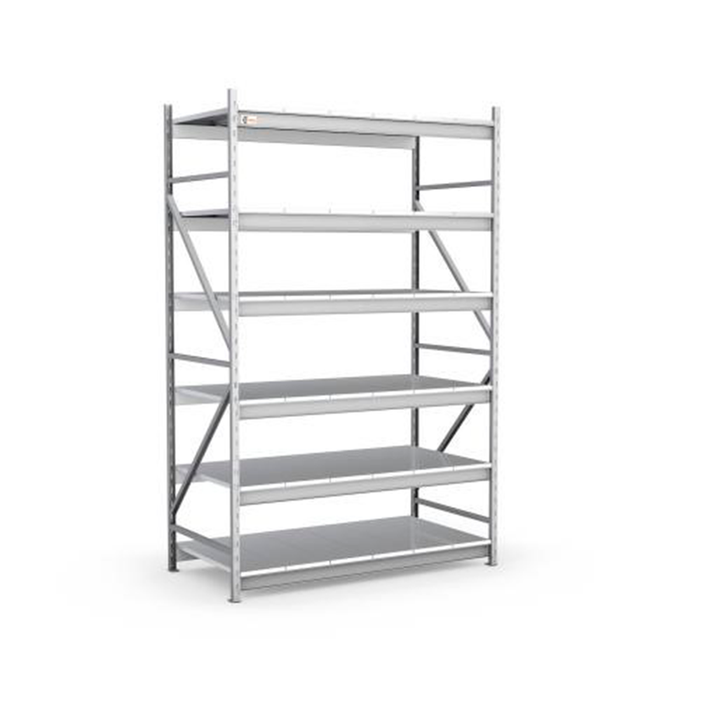 Стеллажи складские , полочные. Стеллажи Flames имеют легко собираемую и разбираемую конструкцию. Конструкция стеллажа состоит из вертикальных рам, закрепленных на них безболтовым способом горизонтальных балок и секционных полок из оцинкованной стали толщиной 1,0 мм. Рамы стеллажа и балки сварные, окрашены порошковой краской. Различные ширина и глубина секций стеллажей позволяют эффективно применять их в любых типах помещений.