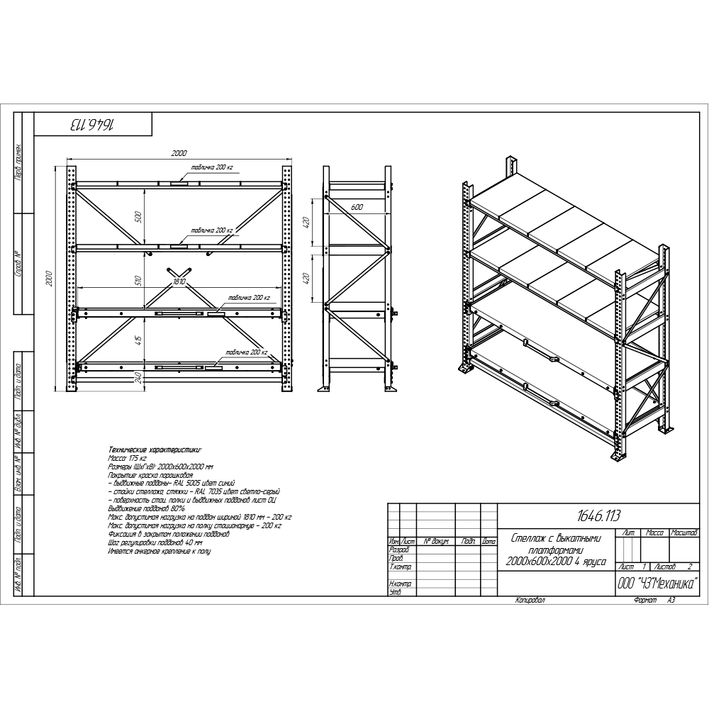 - Стационарная полка – 2 шт. Нагрузка на полку до 200 кг. Поверхность стац. полки лист ОЦ.