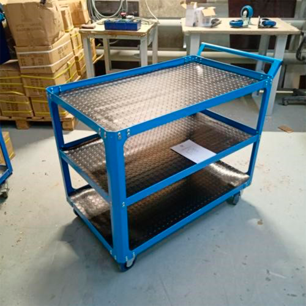 - Тележка с тремя полками. Нагрузка на полку до 120 кг.
