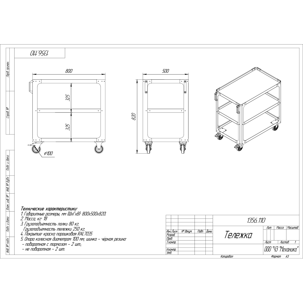 - Тележка с тремя полками. Нагрузка на полку до 80 кг.