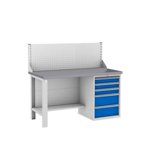 Верстак слесарный однотумбовый . Верстак слесарный Flames серии ВК для средних и тяжелых работ. В зависимости от выполнение работ верстак комплектуется четырьмя видами столешниц: Фанера 40 мм + лак. Фанера 40 мм + кожух из оцинкованной стали 1,5 мм. Фанера 40 мм + окрашенный стальной лист 4,0 мм. Фанера 40 мм + кожух из нержавеющей стали 1,5 мм. Срок службы не менее 10 лет.