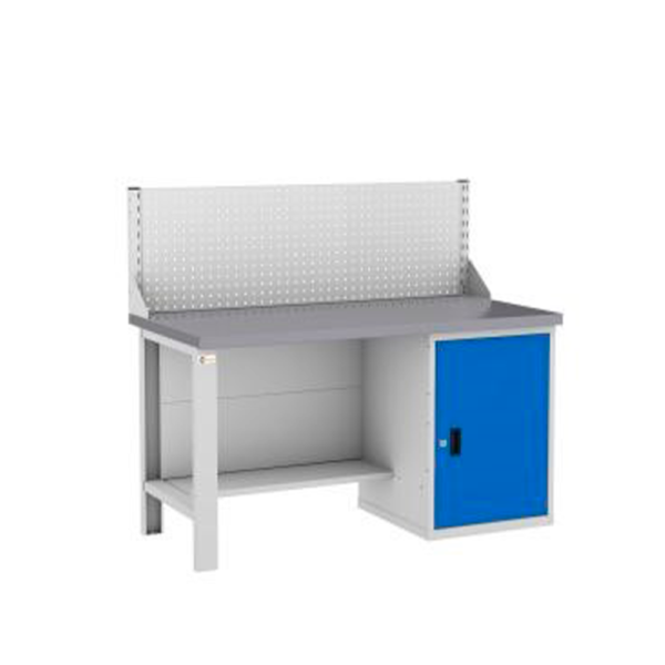 Верстак слесарный однотумбовый . Верстак слесарный Flames серии ВК для средних и тяжелых работ. В зависимости от выполнение работ верстак комплектуется четырьмя видами столешниц: Фанера 40 мм + лак. Фанера 40 мм + кожух из оцинкованной стали 1,5 мм. Фанера 40 мм + окрашенный стальной лист 4,0 мм. Фанера 40 мм + кожух из нержавеющей стали 1,5 мм. Срок службы не менее 10 лет.
