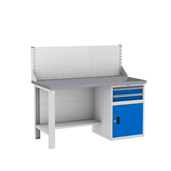 Верстак слесарный однотумбовый . Верстак слесарный Flames серии ВК для средних и тяжелых работ. В зависимости от выполнение работ верстак комплектуется четырьмя видами столешниц: Фанера 40 мм + лак. Фанера 40 мм + кожух из оцинкованной стали 1,5 мм. Фанера 40 мм + окрашенный стальной лист 4,0 мм. Фанера 40 мм + кожух из нержавеющей стали 1,5 мм. Срок службы не менее 10 лет.