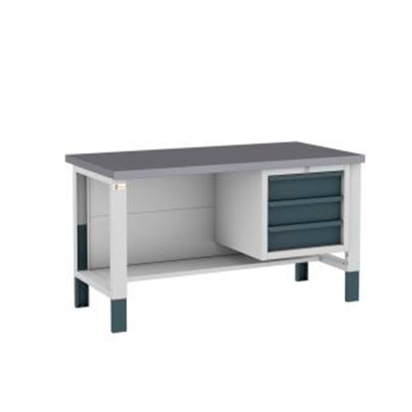 Верстак слесарный с регулируемыми опорами. Верстак слесарный Flames серии ВК для средних и тяжелых работ. В зависимости от выполнение работ верстак комплектуется четырьмя видами столешниц: Фанера 40 мм + лак. Фанера 40 мм + кожух из оцинкованной стали 1,5 мм. Фанера 40 мм + окрашенный стальной лист 4,0 мм. Фанера 40 мм + кожух из нержавеющей стали 1,5 мм. Срок службы не менее 10 лет.
