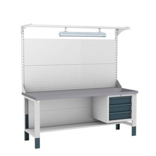 Верстак слесарный с регулируемыми опорами. Верстак слесарный Flames серии ВК для средних и тяжелых работ. В зависимости от выполнение работ верстак комплектуется четырьмя видами столешниц: Фанера 40 мм + лак. Фанера 40 мм + кожух из оцинкованной стали 1,5 мм. Фанера 40 мм + окрашенный стальной лист 4,0 мм. Фанера 40 мм + кожух из нержавеющей стали 1,5 мм. Срок службы не менее 10 лет.
