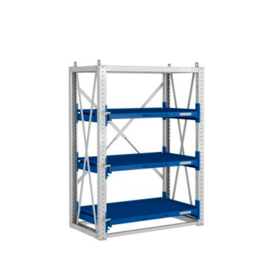 Стеллажи с выкатными платформами созданные для складирования и хранения изделий разного типа и назначения. Конструкции отличаются удобством, функциональностью и долговечностью, они легко позволяют производить разгрузку и погрузку продукции, в том числе крупногабаритных грузов и деталей. Конструкция сборно-разборная. Стеллажи используются для хранения: пресс-форм (литьевые формы); штампов; запчастей к станкам; двигателей и многого другого.